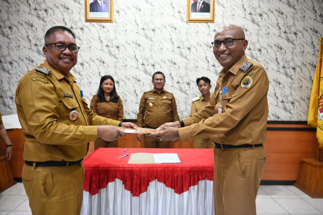 Prosesi sertijab dilakukan berdasarkan Surat Keputusan Bupati Kupang Nomor : 821.12/02/BKPSDM.KAB.KPG/2025 Tanggal 10 September 2025.