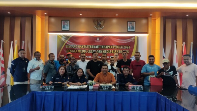 Acara yang bertajuk bincang santai terkait tahap pemilu 2024 dengan media cetak dan elektronik itu di laksanakan di aula pertemuan gedung KPU kabupaten Kupang, sabtu(25/11/2023) dengan di hadiri oleh perwakilan 20 jurnalis.